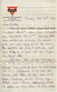 A letter written to his mother from the 72nd Battalion’s position near Auchel in northern France on Dec. 16, 1917.