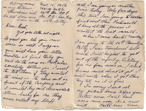 A letter written to his sister Margaret (“Beah”) on Nov. 15, 1916.
