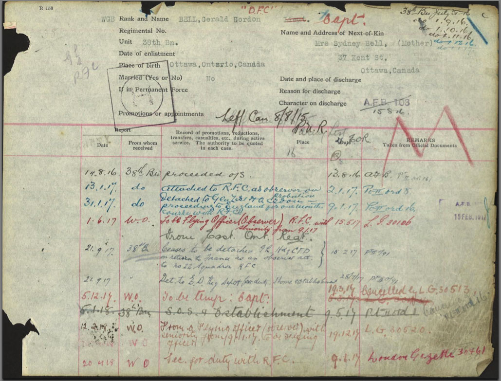 Here’s an example of one of the digitized pages from the service file for Gerald Gordon Bell:
