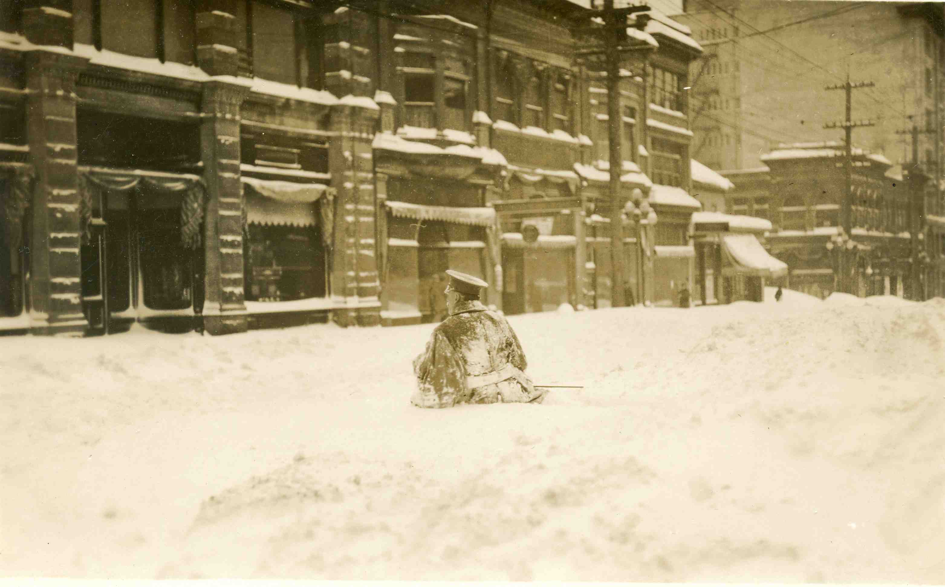 Training continued throughout the unusually cold and snowy winter of 1915/16. Victoria received nearly 80 inches of snow, almost half of which fell in the first day and a half of February. Transportation in the city ground to a halt and at Willows Camp the mess hall roof, used by both the 67th and 88th Battalions, collapsed under the weight of snow. Residents began running low on food and fuel to heat their homes and so on Feb. 4th nearly 600 soldiers from the 67th, 88th and 103rd Battalions as well as troops from the 11th Canadian Mounted Rifles assisted the city in clearing its streets. 125 men from the 67th were detailed to work east along Oak Bay Ave from the Oak Bay Junction while another party dug their way out from the Camp towards Richmond Road. The soldiers efforts paid off and by the following day street car service resumed in parts of the city.