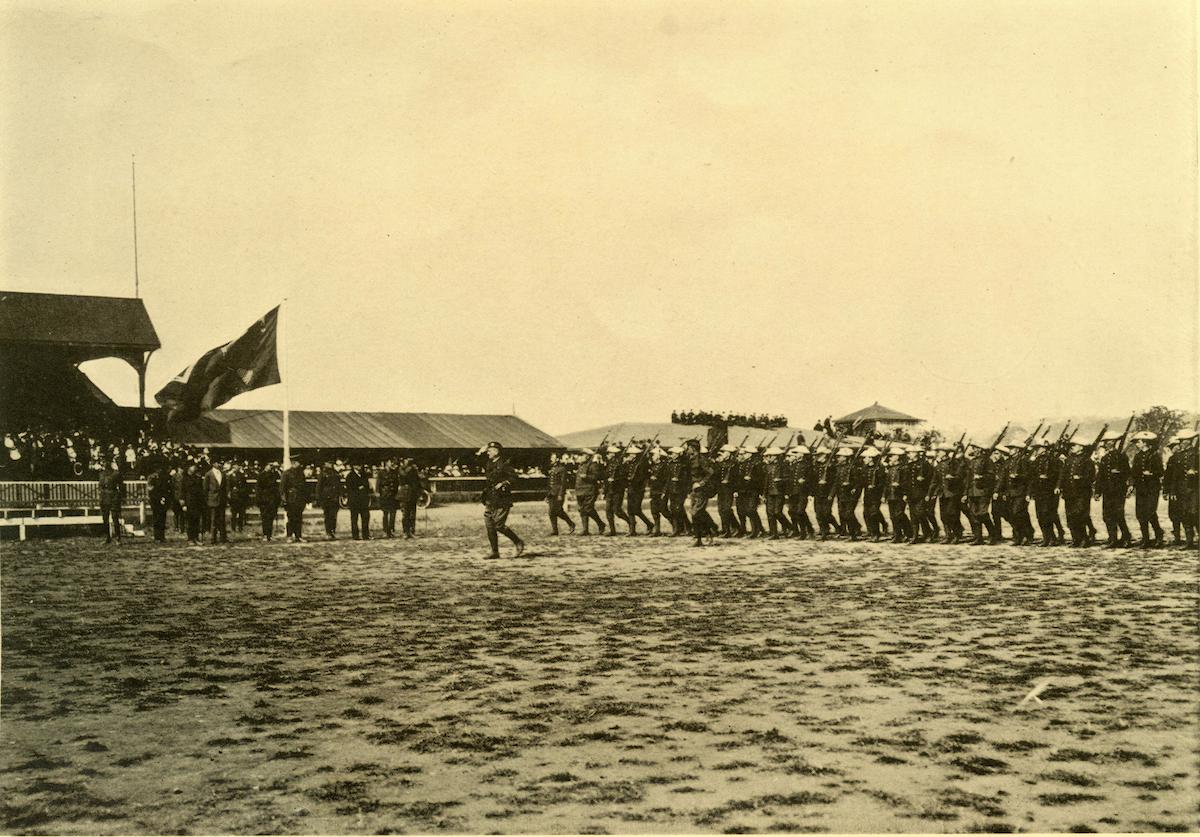 “Unquestionably, the 67th Battalion, which was next in line, furnished the surprise of the occasion. A few weeks ago there was no such establishment. It has been mobilized within that period, and has had little over one week of actual hard drill. Yet it would have been hard for one without long military experience to have found any fault with the corps as it marched by in column of company and gave the salute.”