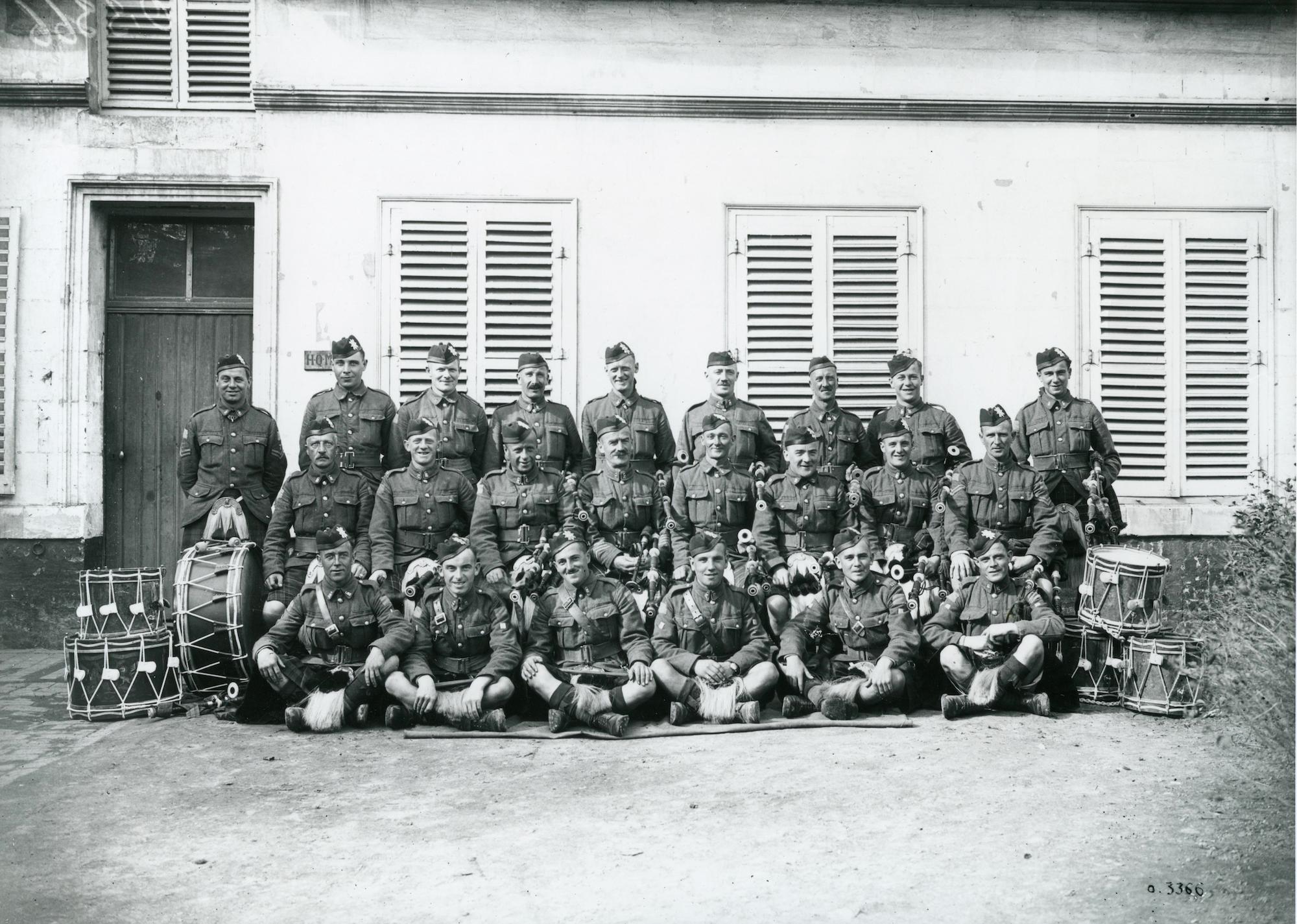 My “find” this weekend was this wonderful photo of the Pipes & Drums of the 42nd Battalion (Royal Highlanders of Canada). The 42nd fought as part of the 7th Infantry Brigade, 3rd Canadian Division. This photograph was taken in Arras, France in September 1918.