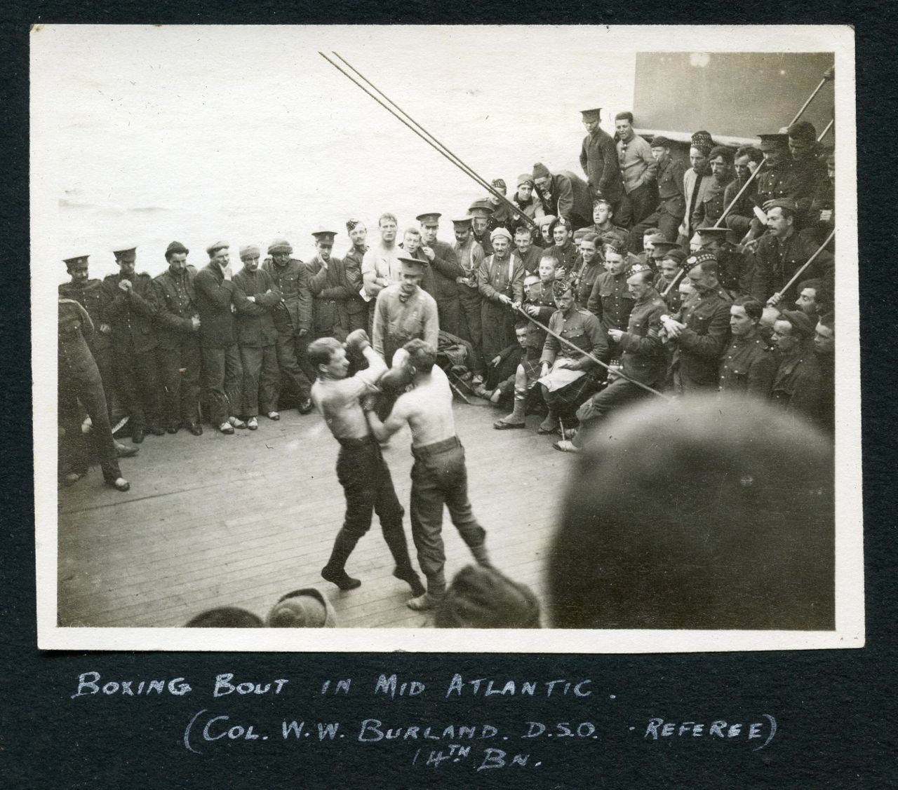 One of my favourite stories about the voyage involves Piper Richardson, whose practicing was interrupted by members of the 14th Battalion, the only non-Highland Battalion in the 3rd Infantry Brigade. This didn’t sit well with the 16th and so the battalion, accompanied by the Pipes and Drums, proceeded below decks to ensure the 14th had a front row seat to a prolonged practice session. According to Canon Fredrick George Scott in his book The Great War As I Saw it, the 14th “retaliated by turning the hose on them. A genuine battle between the contending factions was only averted by the diplomacy of the O.C.”.