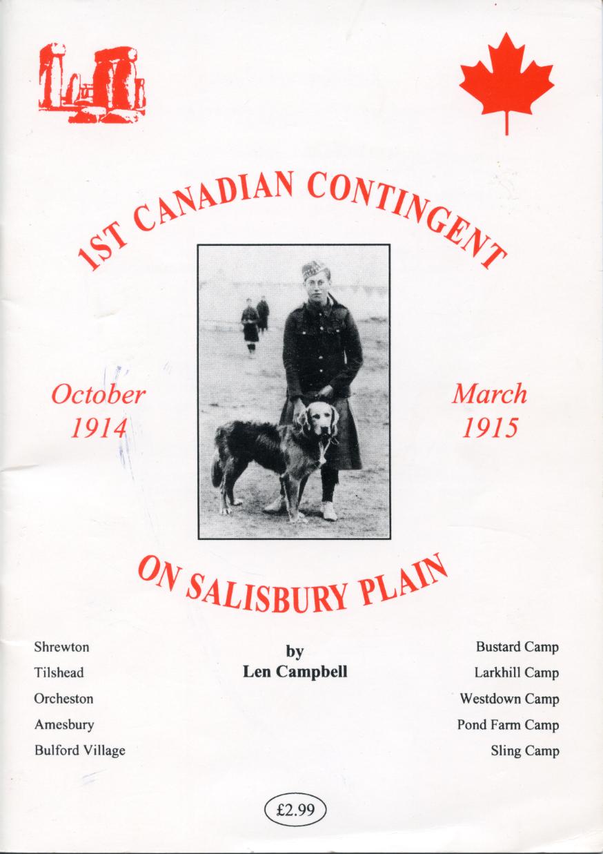 If you’re interested in learning more about the Canadian experience on Salisbury Plain I recommend you be on the lookout for a small booklet written by Len Campbell entitled 1st Canadian Contingent on Salisbury Plain. I’m unable to determine the date of publication although I suspect it was some time ago and is likely out of print. I have seen copies for sale on eBay which is where I obtained my copy.