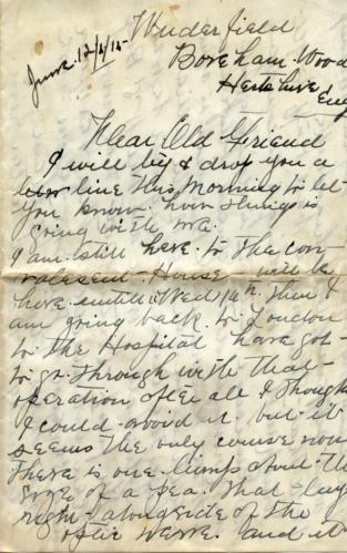 Published April 21, 2015 at 661 × 1055 in Kitchener’s Wood: the letters of Sgt. Charles Herbert Peck‘PeckCH12Jun15003’ June 12, 1915 page 1 ‹ Back