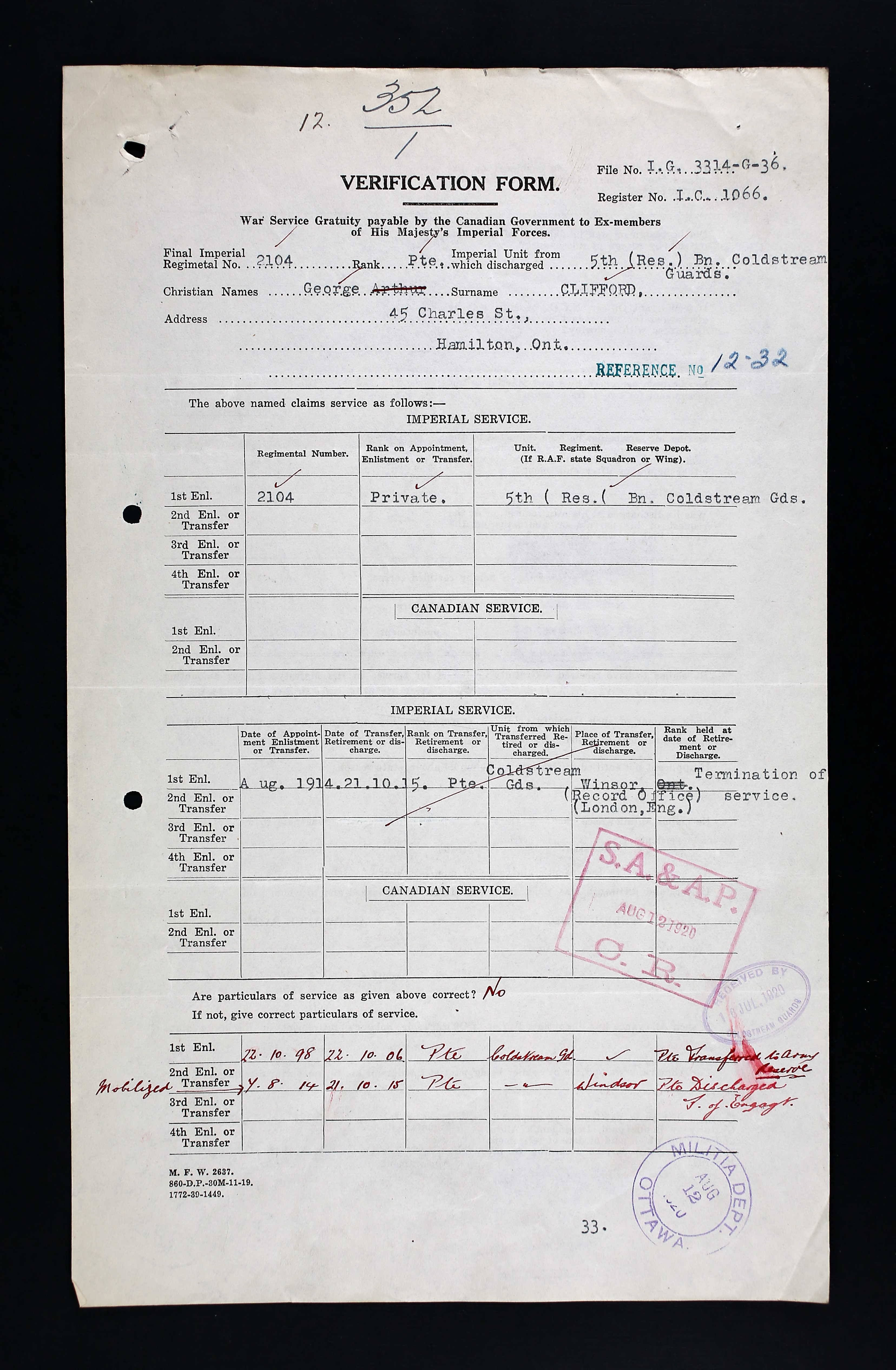 Published June 20, 2015 at 3312 × 5064 in Canadians in the BEF: Imperial War Service Gratuities records‘42585_83024005507_0274-00343’ Verification Form (front)© 1997-2015 Ancestry.com ‹ Back