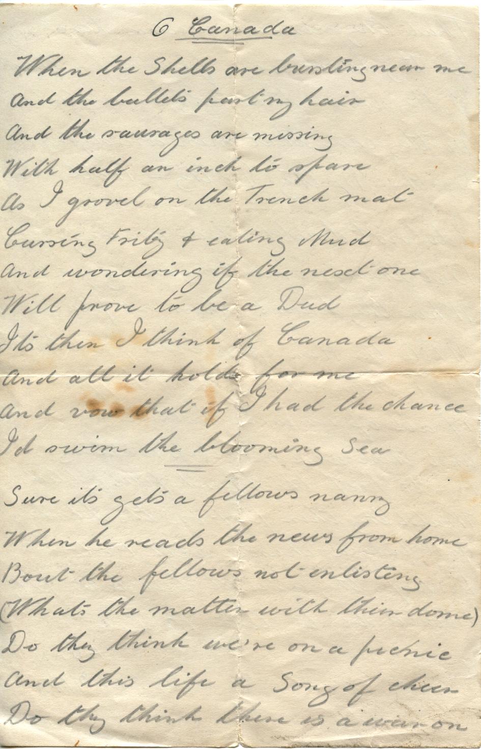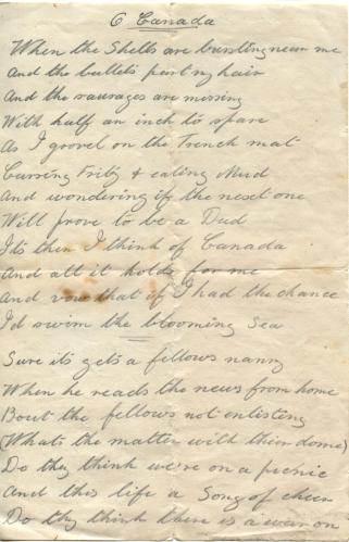 Published August 3, 2015 at 945 × 1470 in Who Goes There? Unknown Trench Poet pens “O Canada!”‘PoetryOCanada003’ O Canada! by “Adams” dated July 3, 1916 page 1 ‹ Back
