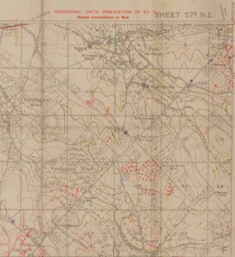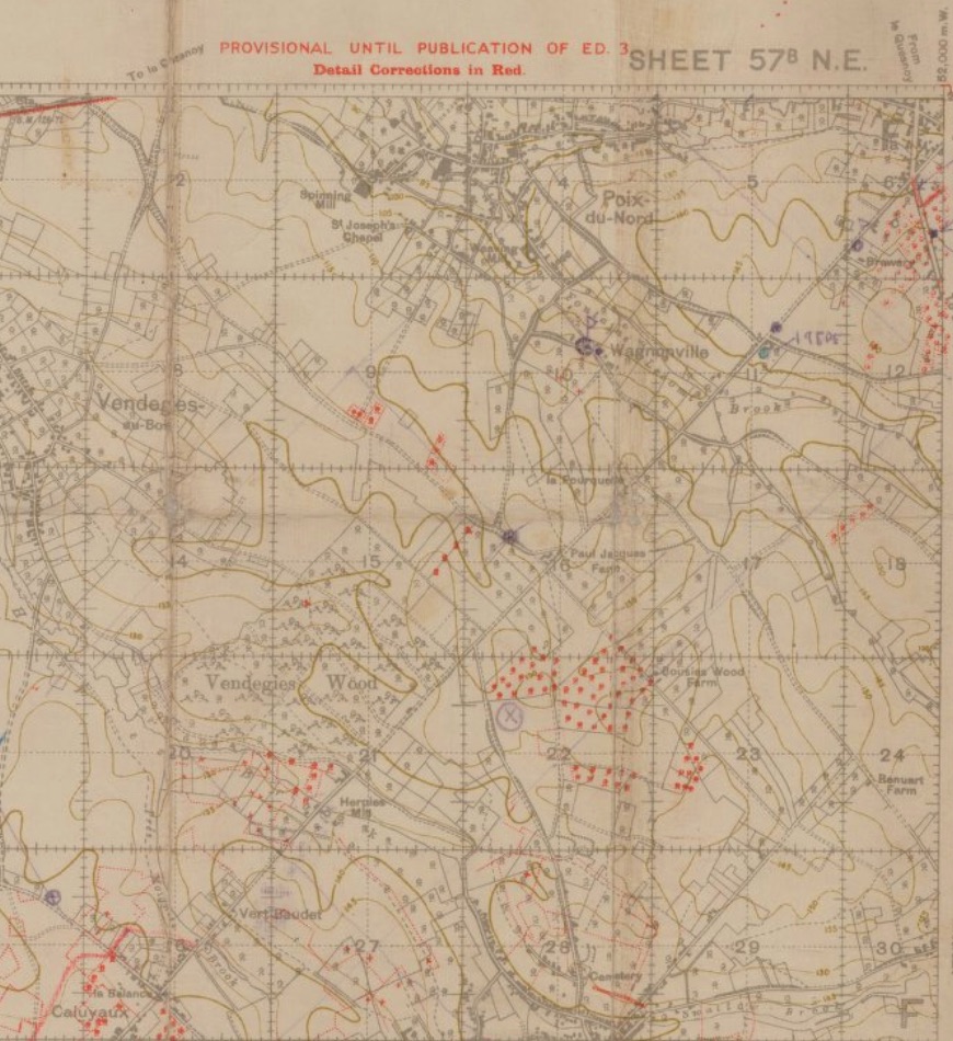 Published November 6, 2015 at 870 × 950 in Remembering Fallen Brothers Henry & Benjamin Skelton‘BousisWoodFarm’ Trench map showing Bousies Wood Farm and Renault Farm. Grid 18 is where shelling took place on October 27, 1918. ‹ Back
