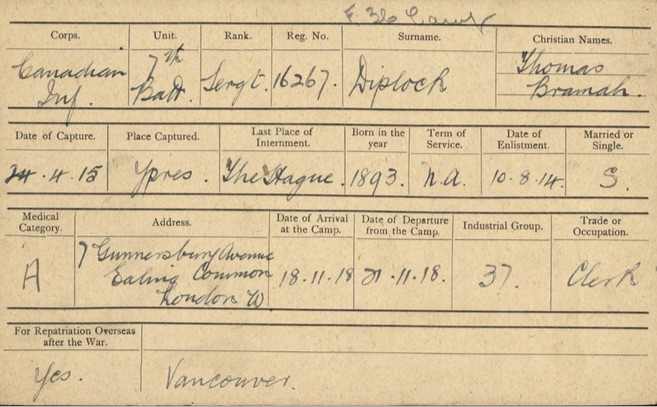 Published December 5, 2015 at 657 × 407 in Christmas at the Front – Merry Xmas from Giessen Dec. 1915‘DiplockInternment’ Source: Service Files of the First World War, 1914-1918 – CEF, Library & Archives Canada ‹ Back
