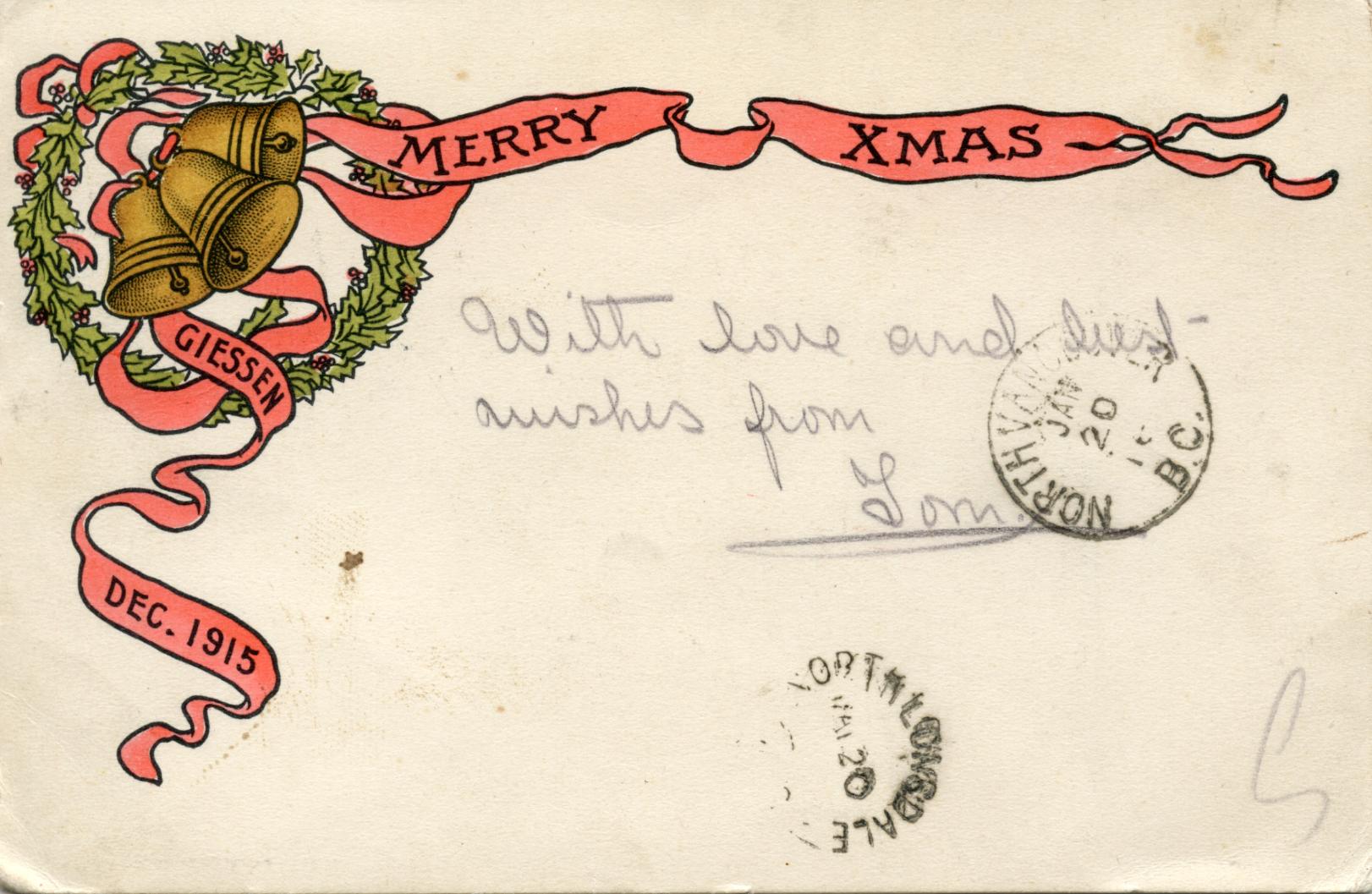 Published December 5, 2015 at 1622 × 1057 in Christmas at the Front – Merry Xmas from Giessen Dec. 1915‘GiessenXmas001’ A Christmas card sent from Giessen P.O.W. camp in 1915 ‹ Back