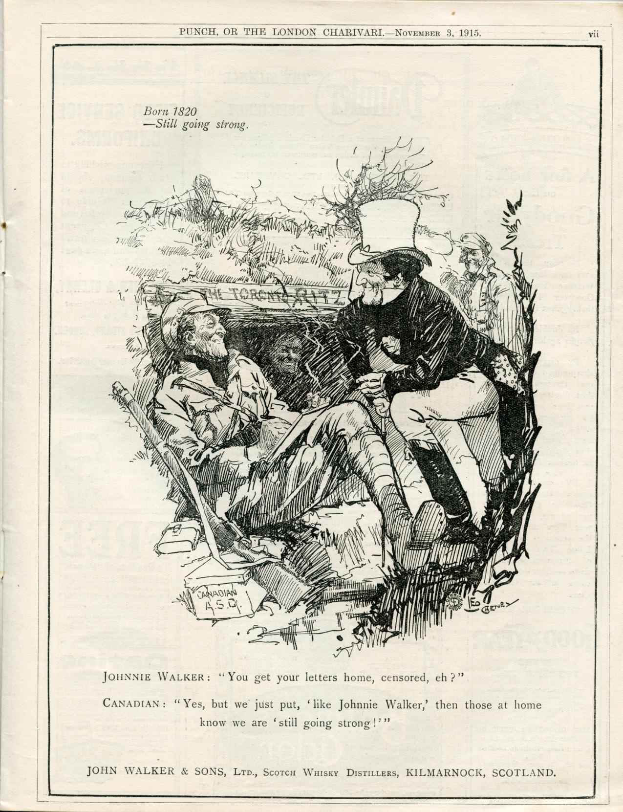 “lay in some Cigarettes for when I get home to go with the J. Walker. The weather is vile at present.”