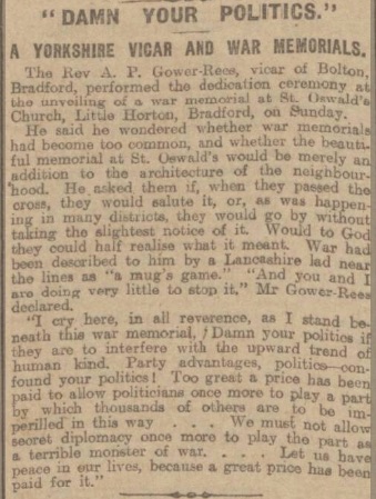 In the aftermath of the Great War many families made a pilgrimage to the battlefields and cemeteries of France and Belgium, including the family of Rev. A.P. Gower-Rees, a former Deputy Assistant Chaplain-General and an out-spoken supporter of ex-Servicemen frustrated by an increasingly apathetic post-war public.