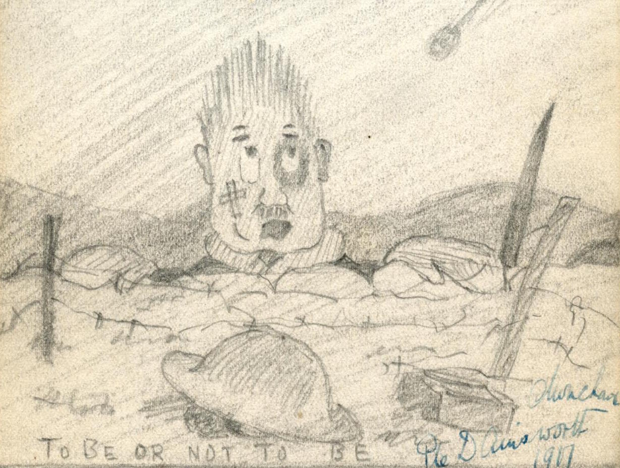 Sticking your neck out is never easy as this old soldier knows only too well (Sketch by Pte Dennis Ainsworth, 1917)