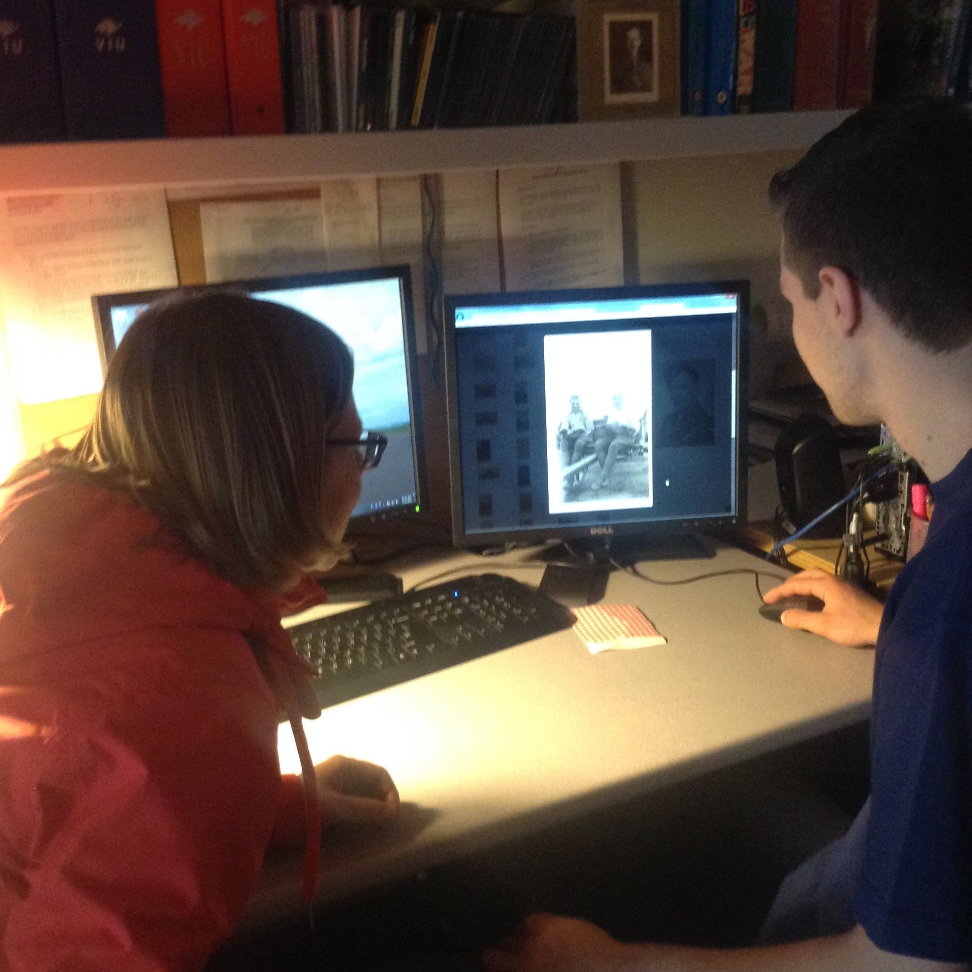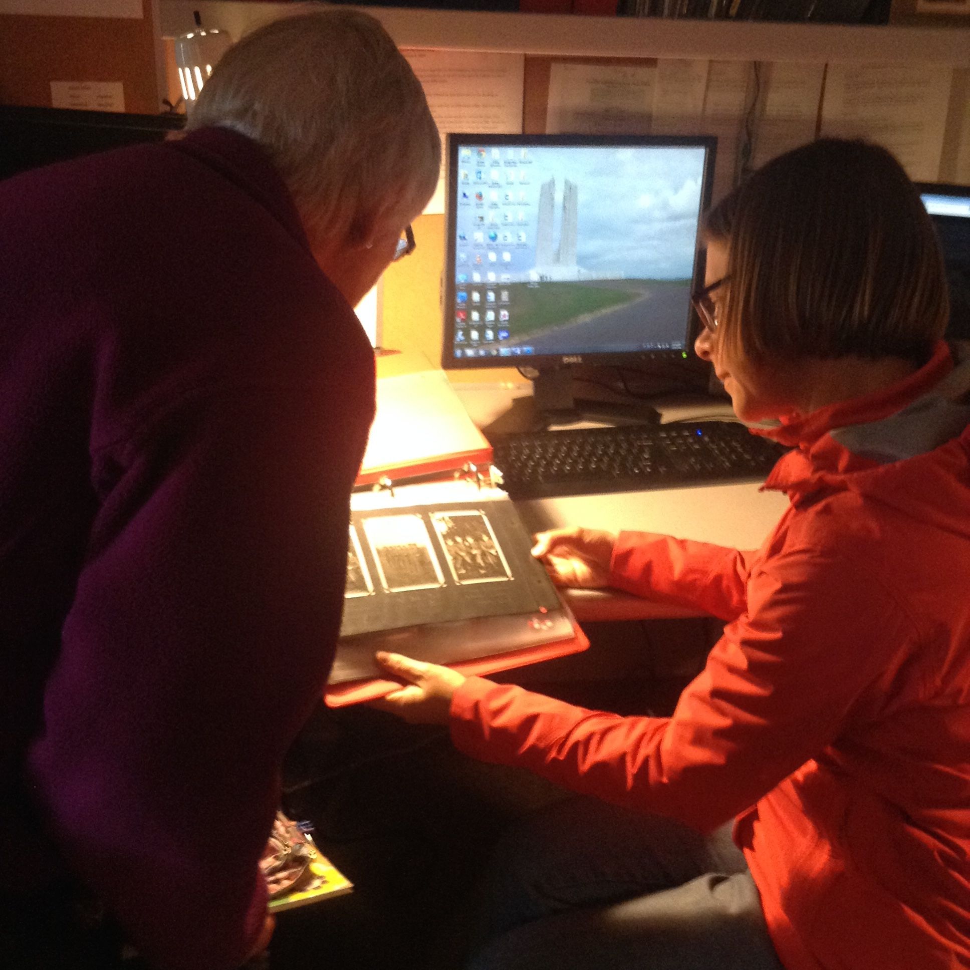 Stephanie and her mom reviewing her grandfather’s photos while visiting the Canadian Letters and Images Project
