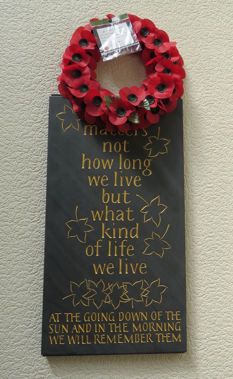 IMG_2268After the tour we met with Executive Headteacher Melanie Williams and teacher/archivist Angela. Royds Hall Community School has made great efforts to ensure the students learn about their school’s wartime history and the sacrifices made by those who convalesced, and in some cases died, at the hospital during the First World War. Hanging in the stairwell is a reminder, a memorial plaque containing a quote from one of Thomas Shearman’s last letters to his mother: