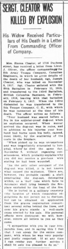 Published November 8, 2016 at 227 × 832 in Dugout fire claims the life of L/Cpl Josiah Cleator, C.E. British Colonist 13 Feb 1918 ‹ Back