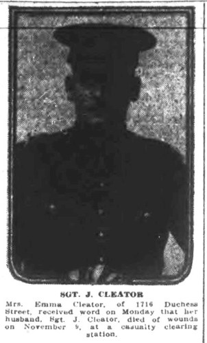 Published November 8, 2016 at 418 × 691 in Dugout fire claims the life of L/Cpl Josiah Cleator, C.E. British Colonist 23 Nov 1917 ‹ Back