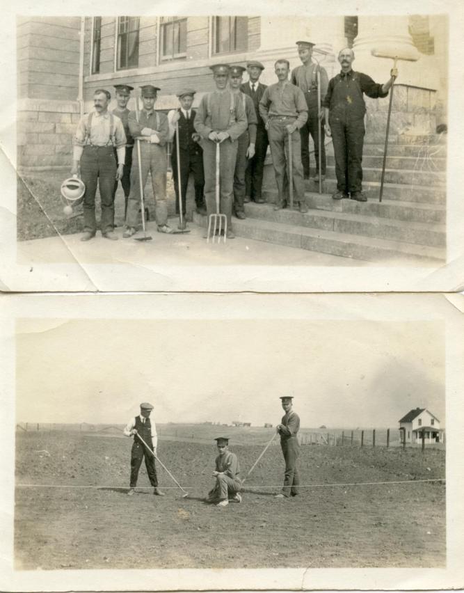 This pair of snapshots yield few clues as to the soldier’s whereabouts however someone may recognize the building in the first photograph. It’s clear from the second that they are somewhere on the Canadian prairies. If you have a hunch leave a comment below.