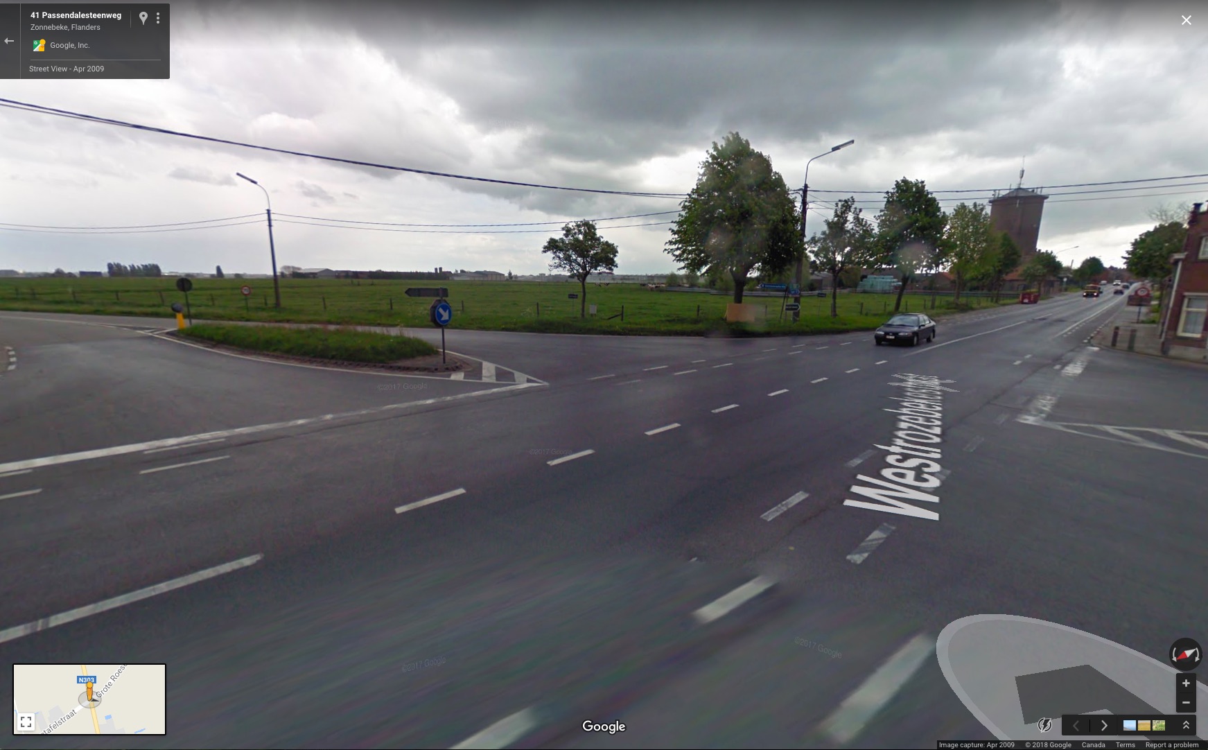 Now zoom in on map reference V30d3.7 and hover your cursor over the intersection then known as Vindictive Cross Roads. Unfortunately it’s not possible to access Google Street View directly from the NLS interface however in the lower right corner of the screen you will find the intersection’s Longitude and Latitude. Make a note of these digital coordinates (3.0207 & 50.9084), open a new browser window for Google maps and in the ‘Search Google Maps’ box enter the coordinates in reverse order, ie. Latitude first (50.9084) and Longitude second (3.0207), or you will find yourself in the middle of the Indian Ocean! Once you have the map displayed you can drag and drop the little yellow “Pegman” onto the intersection and virtually visit Vindictive Cross Roads as it appears today.