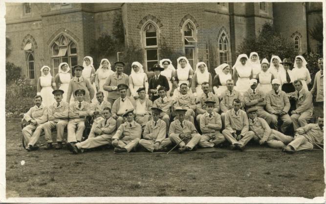 This week I”m featuring an undated photo taken at Abbots Barton V.A.D. Hospital in Canterbury, Kent. The building was the family home of MP and former Canterbury Mayor Francis Bennett-Goldney who served as an assistant military attache at the British Embassy during the war. An excellent article on the Bennett-Goldney was published on The History of Parliament blog. Sadly he never saw his home again as he died in France on July 26, 1918 from injuries sustained in a car accident. His former home and V.A.D. hospital is now a hotel.