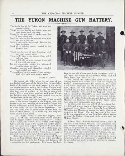The Yukon Machine Gun Battery, CMG Vol. 1 No. 4, November 1917. Source: Library and Archives Canada