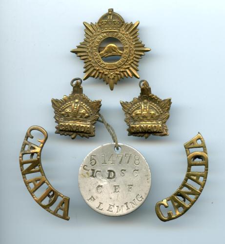 John Flemings CASC cap badge, collar badges, shoulder badges and ID tag