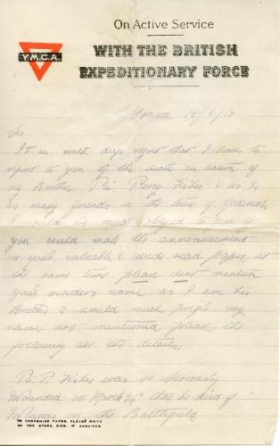 George Fisher letter, page 1