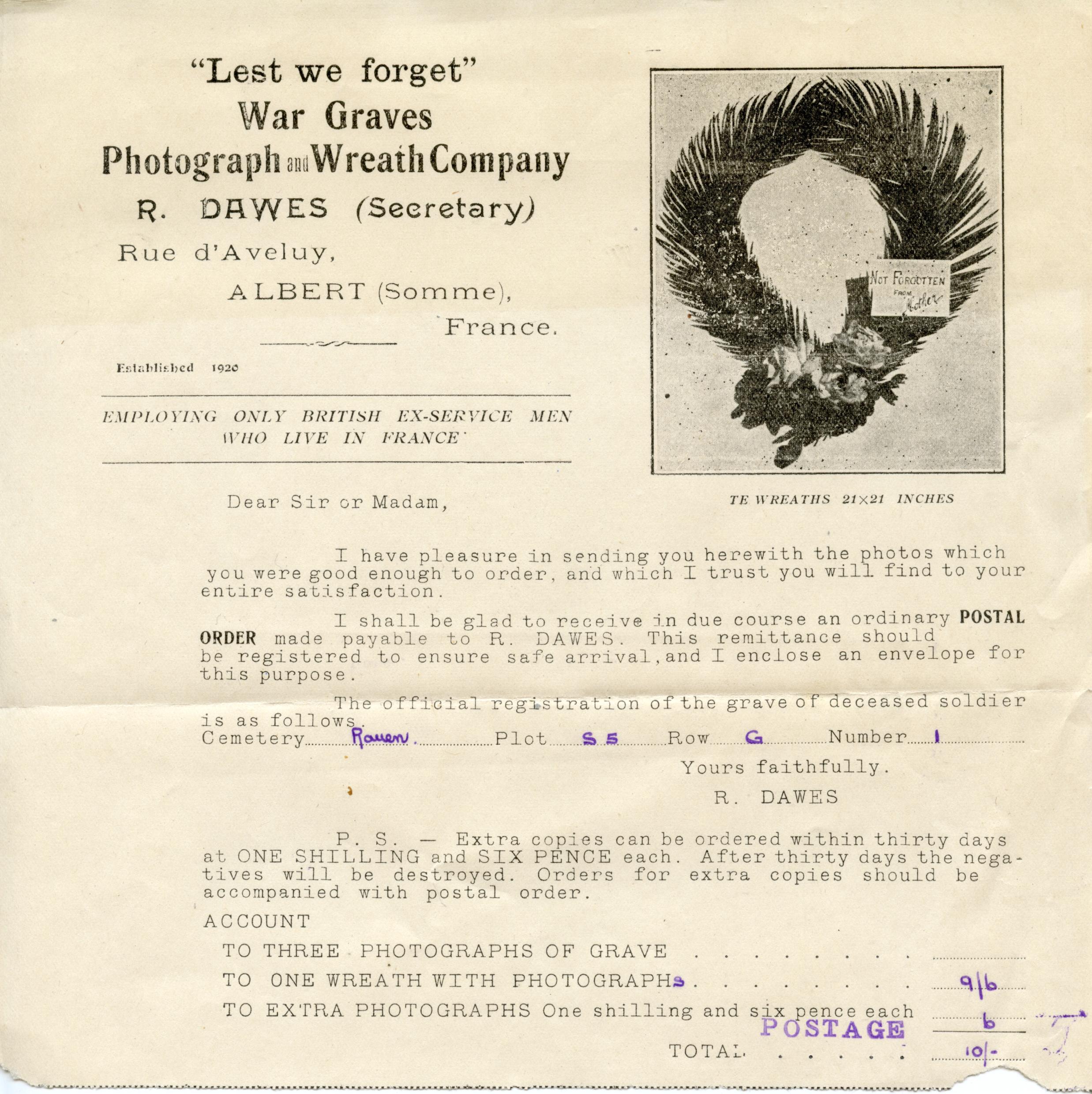 Invoice for photos and wreath-laying services