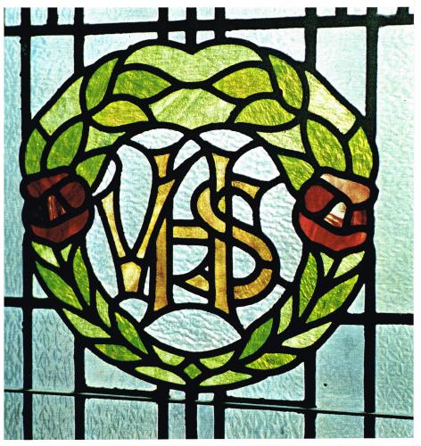 A stained glass window installed in 1920 in memory of the Victoria High School students who fell during the First World War. Courtesy of Victoria High School Archives